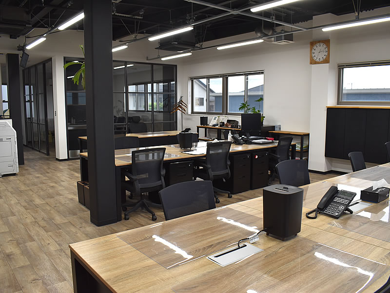 現場ではやはりどうしても汚れる仕事もします、ですが現場から離れ社内業務に就く際は清潔感溢れる空間で仕事をする