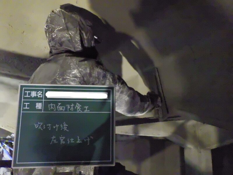 浄水場ということもあり、厚生労働省規程のノンポリマーノンファイバーセメントモルタルという安全な資材を使用しております。