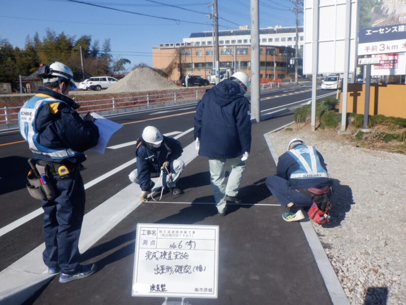 完成検査では書類の確認を行い、それから現場で出来形の確認として現地を検査官が直接計測します。