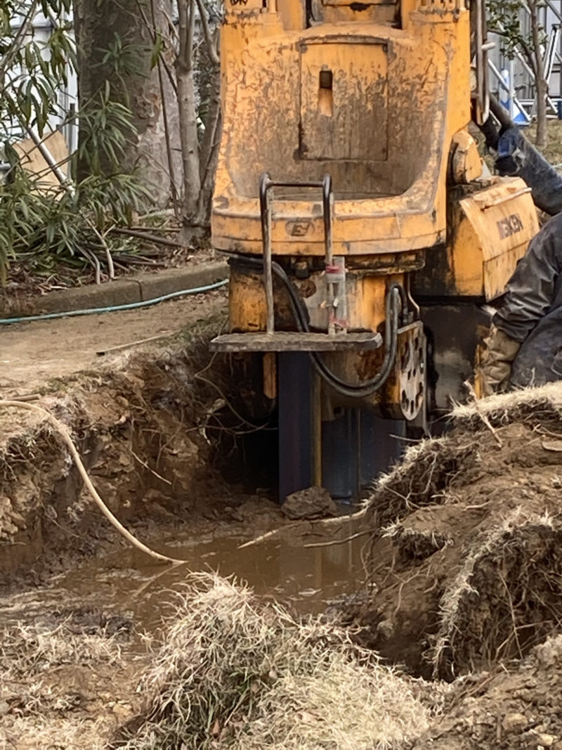 深く掘るには土の壁が崩落しないように土砂を抑える必要があり、そんな時は仮設工事として山留工事が必要となります。